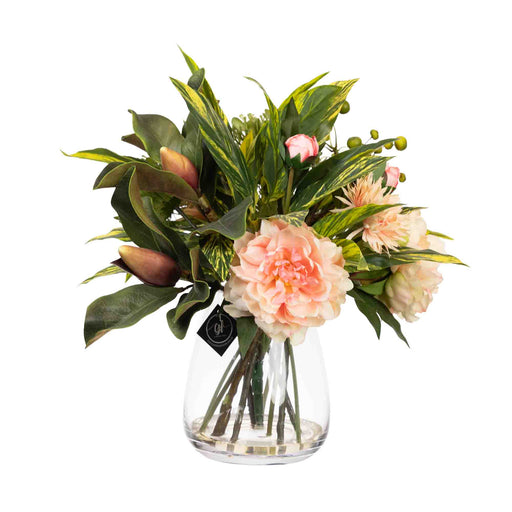 Peony & Banksia Mixed Arrangement in a Glass Peach - 30cm