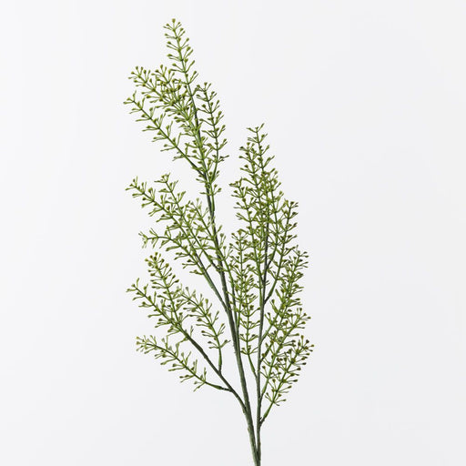 The Seed Spray in Grey Green stands 76cm tall and comes in a pack of 12. This evergreen artificial spray features delicate stems dotted with seed h...