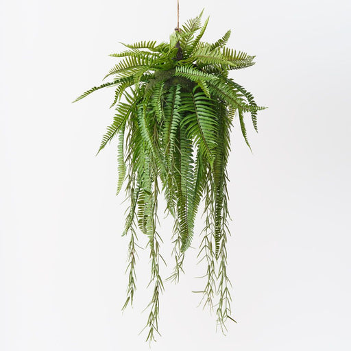 The Fern Boston Hanging Ball in vibrant green measures 105cm and features lush, artificial foliage shaped into a charming sphere. This evergreen ac...