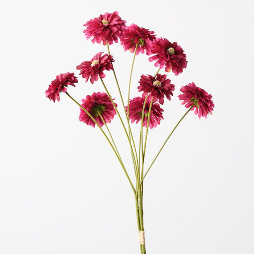 Bring home a splash of garden charm with this lively bundle of artificial Zinnia stems in rich burgundy. Standing 58cm tall, each stem boasts full,...