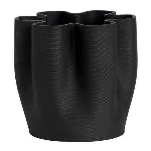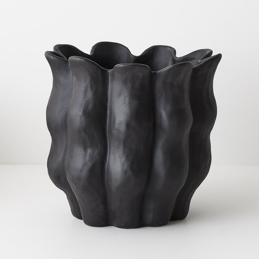 The Zenika Pot captivates with its distinctive ridged contours and sophisticated matte black surface. Its eye-catching ruffled edge top and layered...