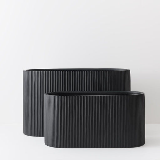 Impress your guests with the sleek and sophisticated design of this black Runiki Pot. Its elegant oval shape and linear style are perfect for showc...