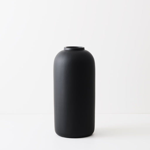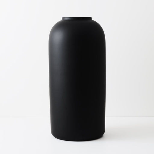 This tall, cylindrical black pot features a sleek narrowing at the top, ideal for showcasing large stems or slender, tall plants. It serves as a st...