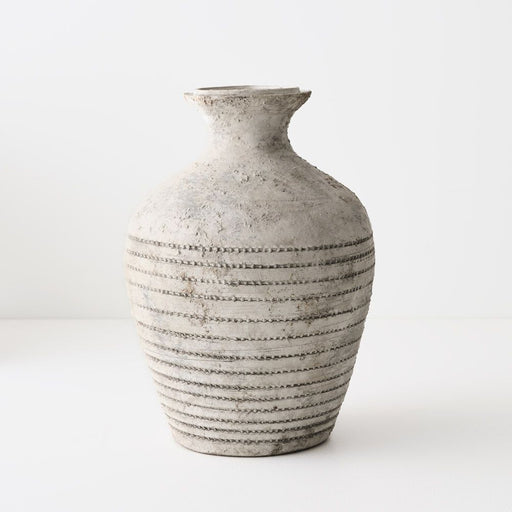 The Sumati Pot in lime wash grey features a sleek linear design and a classic silhouette, measuring 33cm in height and width. Crafted for durabilit...