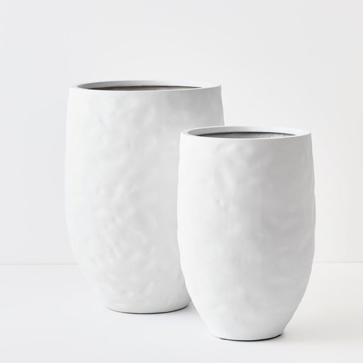 Cylinder Tall White Pot 80cm Set of 2. This set of 2 tall white planters is ideal for any living space, boasting 80cm and 60cm of height and a styl...