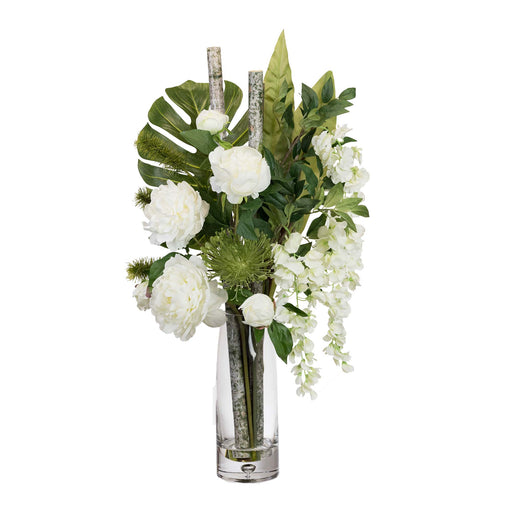 White Peony & Rose Mixed Arrangement In Glass 36cm