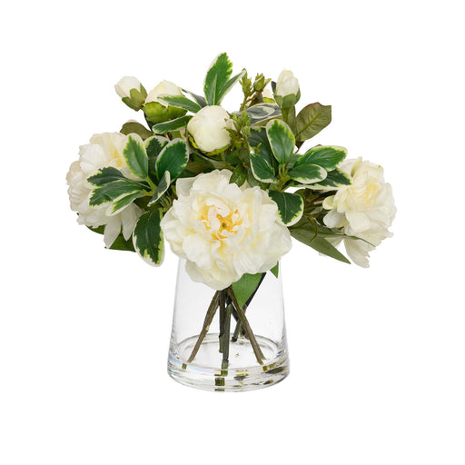 Peony & Banksia Mixed Arrangement in a Glass White - 30cm