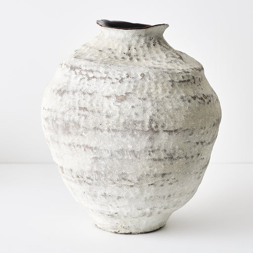 This striking ceramic vessel showcases understated sophistication through its speckled white finish and carefully crafted linear embellishments. St...