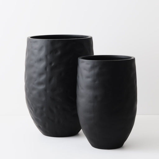 This set of two elegant black pots showcases a delicate uneven texture that evokes a handcrafted aesthetic. Suitable for indoor and outdoor environ...