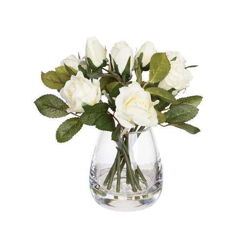 Expertly crafted, this exquisite artificial rose arrangement in a delicate glass will elevate the elegance of any living space. Its refined beauty...