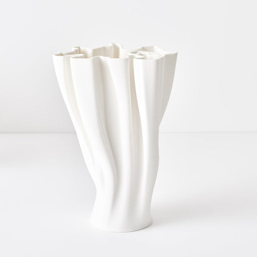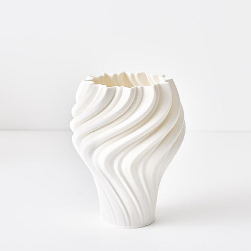 Elevate your space with the sculptural Carter Vase in elegant ivory. Standing 22cm tall with a 16cm diameter, this striking 3D-printed masterpiece ...