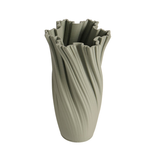 The Emma Olive Green Vase showcases a distinctive swirling silhouette crafted through advanced 3D printing, ensuring no two pieces are identical. S...