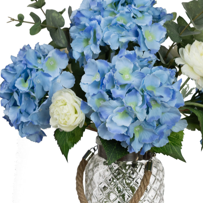 Artificial Hydrangea & Peony Mixed Arrangement In Mason Jar 38cm