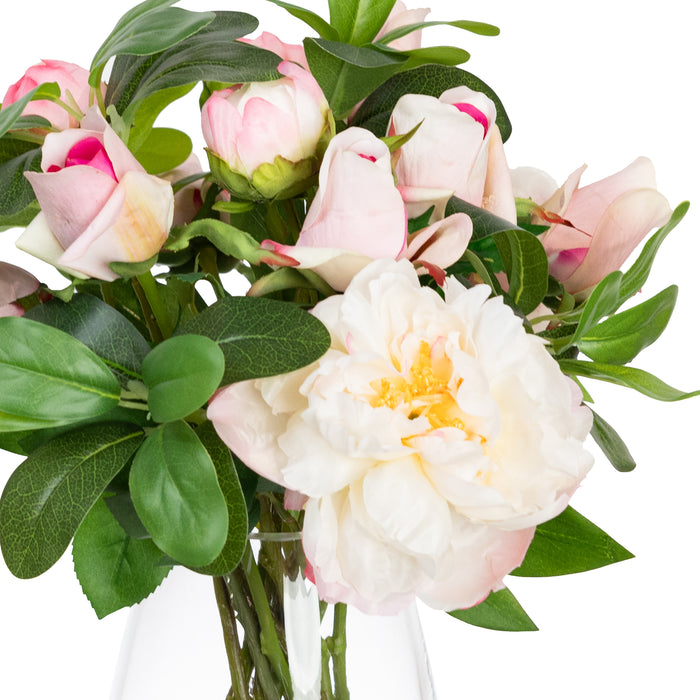 Artificial Pink Peony & Rose Mixed Arrangement In Glass 36cm