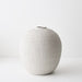 This striking limestone vessel showcases a spherical silhouette enhanced by intricate cross-hatch detailing. Standing 38cm high with a 36cm diameter, the compact opening creates an elegant focal point whether displaying minimalist arrangements or functioning as sculptural décor. Versatile for both interior and exterior settings, its handcrafted construction means minor variations in finish are inherent to its artisanal appeal. Please note that complete waterproofing cannot be guaranteed due to the handmade nature of production.